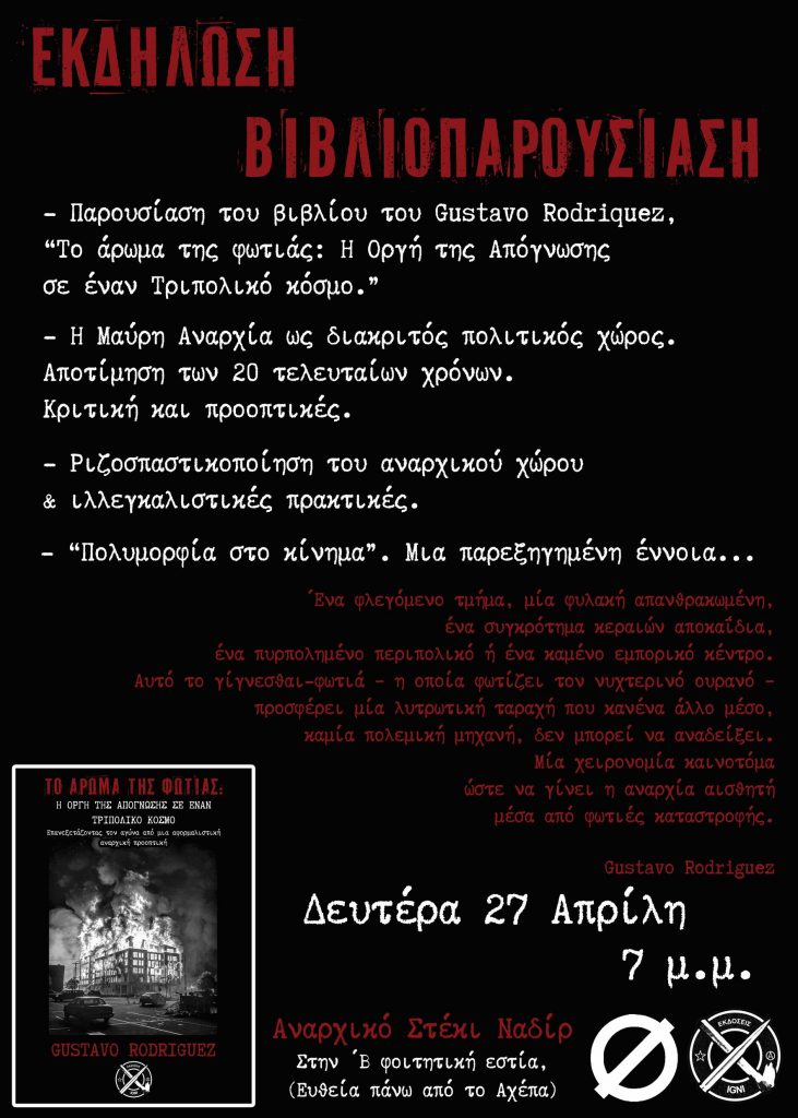 - Η Μαύρη Αναρχία ως διακριτός πολιτικός χώρος. Αποτίμηση των 20 τελευταίων χρόνων.Κριτική και προοπτικές.